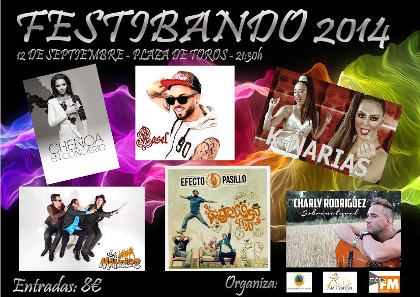 Efecto Pasillo, K-narias, Chenoa, Rasel, Charly Rodríguez y Los Manolos actuarán el próximo viernes, 12 de septiembre, en el Festibando del Día de los Huertanos de las Fiestas Patronales 2014 de Cehegín. La Plaza de Toros acogerá a partir de las 21:30 horas este macro espectáculo que cada año reúne a miles de personas en el coso ceheginero y que se ha convertido en uno de los actos más esperados del programa festivo.